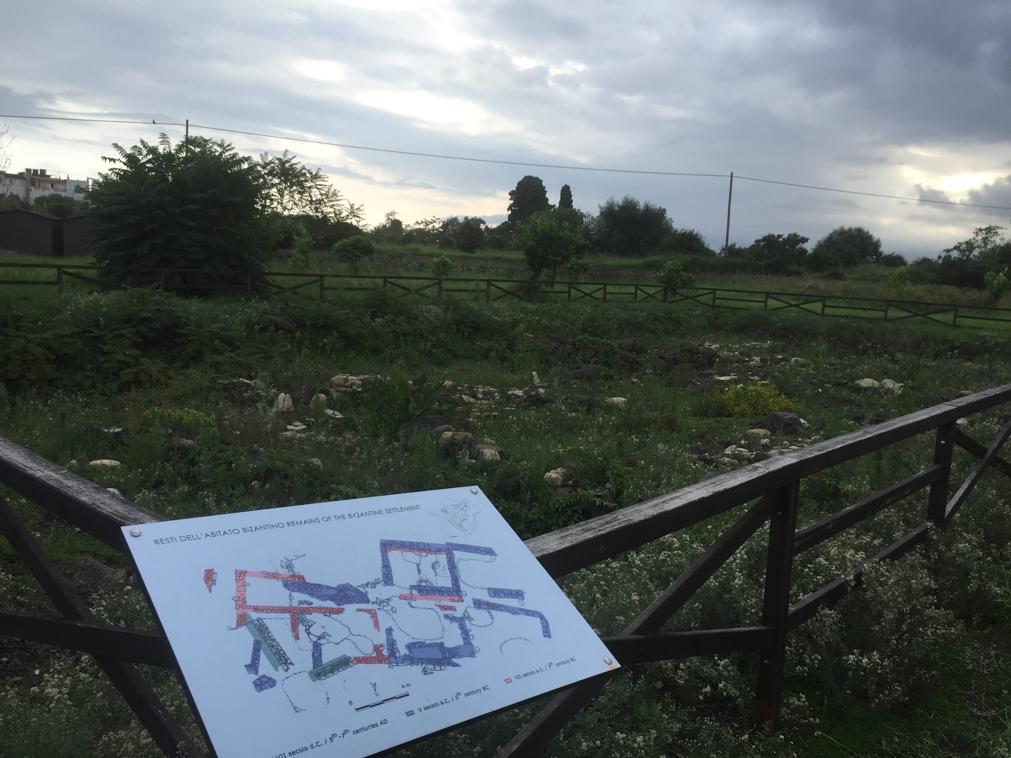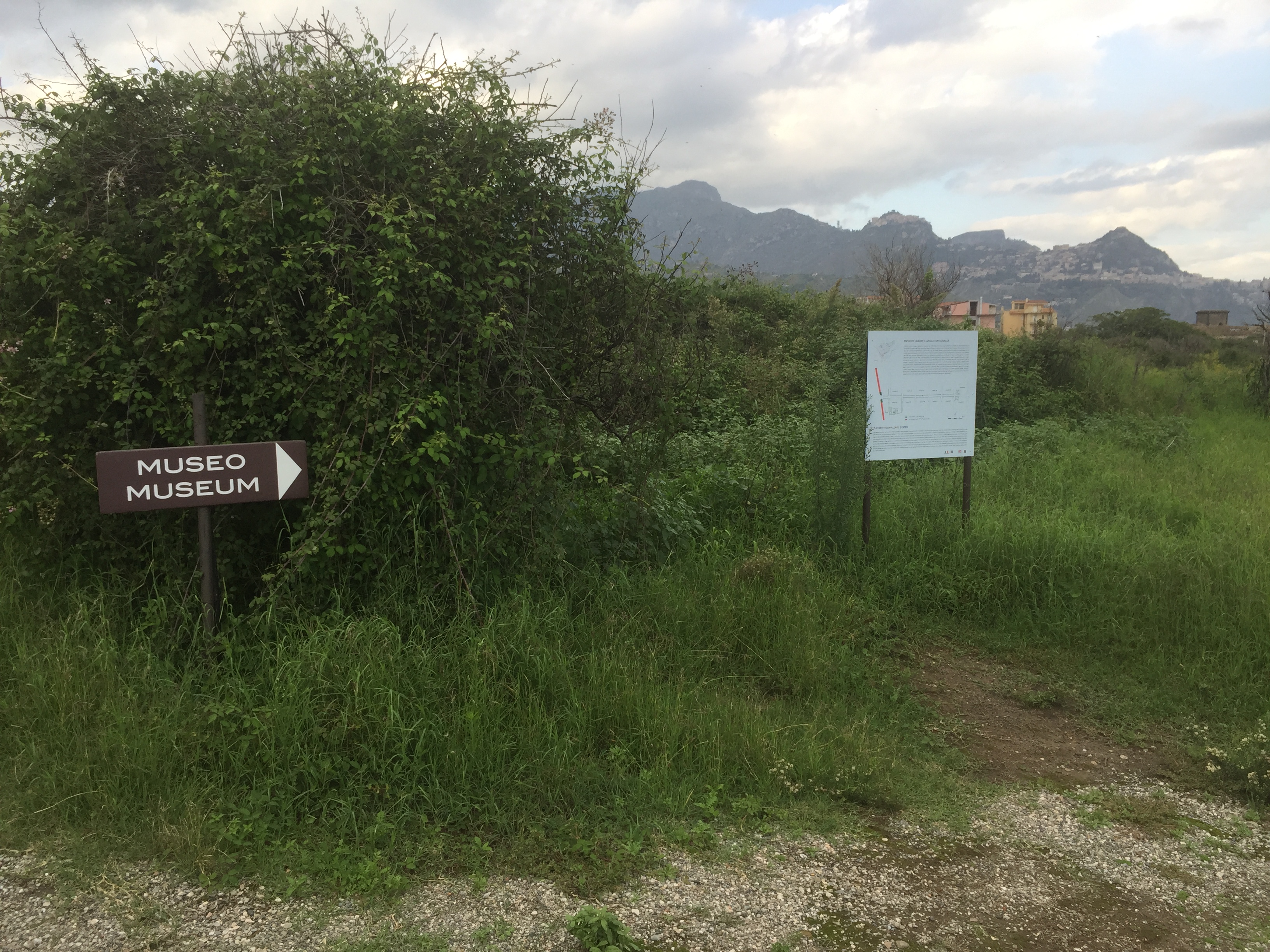GIARDINI NAXOS : Un Parco archeologico sepolto da erbe e sterpaglie.Capannoni e degrado completano la cornice