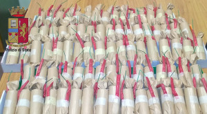 Stava dentro un vecchio serbatoio in eternit abbandonato, protetto da un asciugamano in cui era stato avvolto. E’ un Acier Cockerill il fucile a canne mozze ritrovato ieri mattina dagli agenti della Squadra Mobile sul tetto di una delle palazzine dell’isolato 13, viale Giostra. Calibro 16,9, matricola parzialmente abrasa, l’arma è stata rinvenuta con 37 cartucce Fiocchi calibro 16 e 12, durante servizi specifici operati dalla Polizia in città. Controlli mirati anche lungo le principali arterie cittadine durante i quali gli agenti delle Volanti hanno denunziato un messinese, 29 anni, per il reato di fabbricazione e commercio abusivo di materiale esplodente. L’uomo è stato fermato dai poliziotti ieri pomeriggio, 18.30 circa, lungo la SS114, in zona Pistunina, a bordo di un’utilitaria. Nel cofano dell’auto gli agenti hanno trovato numerose scatole di fuochi pirotecnici di genere vietato. Tutto il materiale sequestrato, tra cui un centinaio di “caramelle”, botti artigianali ritenuti altamente pericolosi, è stato avviato alla distruzione. Sequestrati altri fuochi pirotecnici lungo il viale San Martino, ieri mattina, intorno alle 12.00. Gli agenti hanno sequestrato un’intera bancarella allestita sul marciapiede.