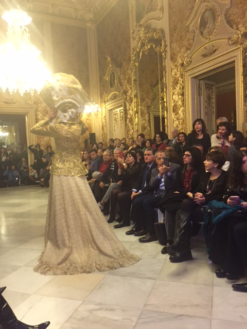 Giuseppe Fata, l’hair stylist delle dive nonché presidente della Camera Nazionale Giovani Fashion Designer, l’ideatore delle cosiddette “Teste Scultura che ha presentato per le International Head Sculpture, le creazioni ispirate a “Marie Antoinette (Versailles ,1774)” e alla “ Gioconda “(di Leonardo da Vinci, 1503/06), con i gioielli creati dal noto Gerardo Sacco e gli abiti a firma di Giovanni Cannistrà, ed affiancato a Palazzo Manganelli da Alessandra Giulivo, direttore generale della “Camera Nazionale Giovani Fashion Designer” e il make-up artist Dario Caminiti. La catanese Arcangela Aiello dopo aver presentato alcune sue recenti creazioni ha presentato la collezione “I fiori dell’Islam”, già inserite nel calendario delle iniziative dell’Alta Moda Romana alcuni anni fa. Moda è creatività ma anche imprenditorialità ed in passerella abbiamo visto sfilare le proposte moda donna di “Sportivo Emozioni & Sensazioni”, sia abiti da cerimonia che il casual e i costumi per l’estate 2016. Largo spazio alle proposte e creatività degli abiti da sposa proposti da Bridal, ai consigli della wedding planner Rossella Lanzafame e del wedding photographer Marcello Di Mari. Le modelle hanno sfilato pure con le “ Creazioni di Remigia”, atelier laboratorio che trasforma le conchiglie in veri gioielli, veri pezzi d’arte. Una serata ricca per un ventaglio di proposte provenienti da imprenditori e creativi diversi nello stile e nella ricerca di dettagli per la moda femminile, così come le collezioni proposte da SopraLeRighe, Vanity Open Space. Ma “Le Défilé de Mode” ha voluto così dare spazio alle idee e tendenze del make up e delle acconciature grazie allo staff e agli allievi dell’Accademia Nicotra, scuola pronta a dare vita anche ad un nuovo format tv per la realizzazione di un reality. Protagonista della serata pure una azienda leader nel settore del design e della oggettistica, quella che fa riferimento a Tito D’Emilio, che ha ricevuto il prestigioso riconoscimento“ Compasso d’Oro” alla Carriera , premio assegnato dalla Giuria Internazionale ADI (Associazione per il Disegno Industriale), e che ha visto Marzio D’Emilio raccontare la storia di questa azienda e presentare anche la nuova avventura imprenditoriale con la creazione del brand Vivo D’Emilio, che riassume tutto il know-how della Tito D’Emilio . Non solo moda a Palazzo Manganelli, una occasione per raccontare la Sicilia anche attraverso altri linguaggi e strumenti della comunicazione , come la recitazione e la cinematografia, la tv, la scrittura. Michele Li Volsi, attore palermitano protagonista anche nel film “La Piovra”, ospite della serata, ha così presentato “ I Predatori degli innocenti”, un cortometraggio girato a Marsala sul tema della violenza nei confronti dei minori. “Le Défilé de Mode”, creato da Giuseppe Stramandino, con la direzione artistica di Samet Burgaj, ha così acceso i riflettori su Catania, regalando un evento moda che ha fatto da vetrina anche alla stessa città etnea.