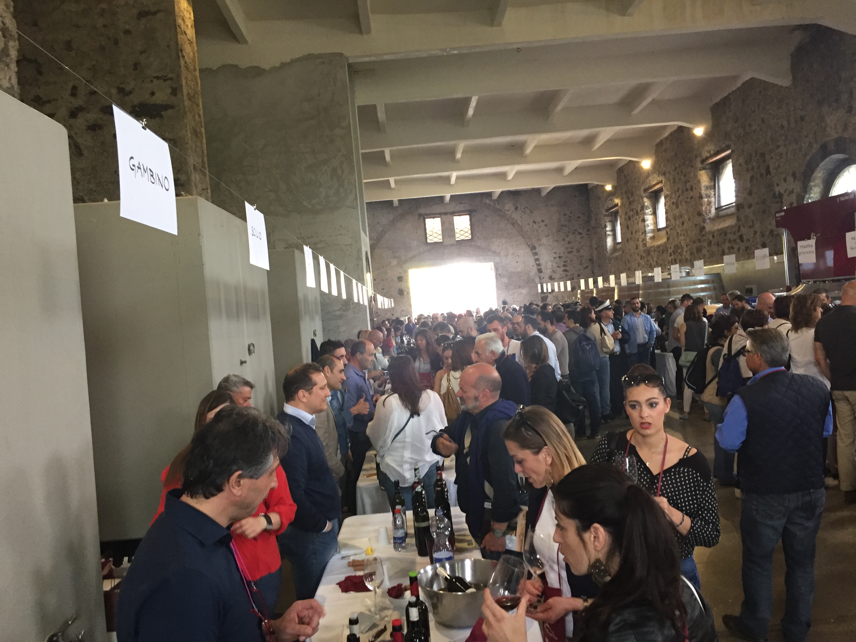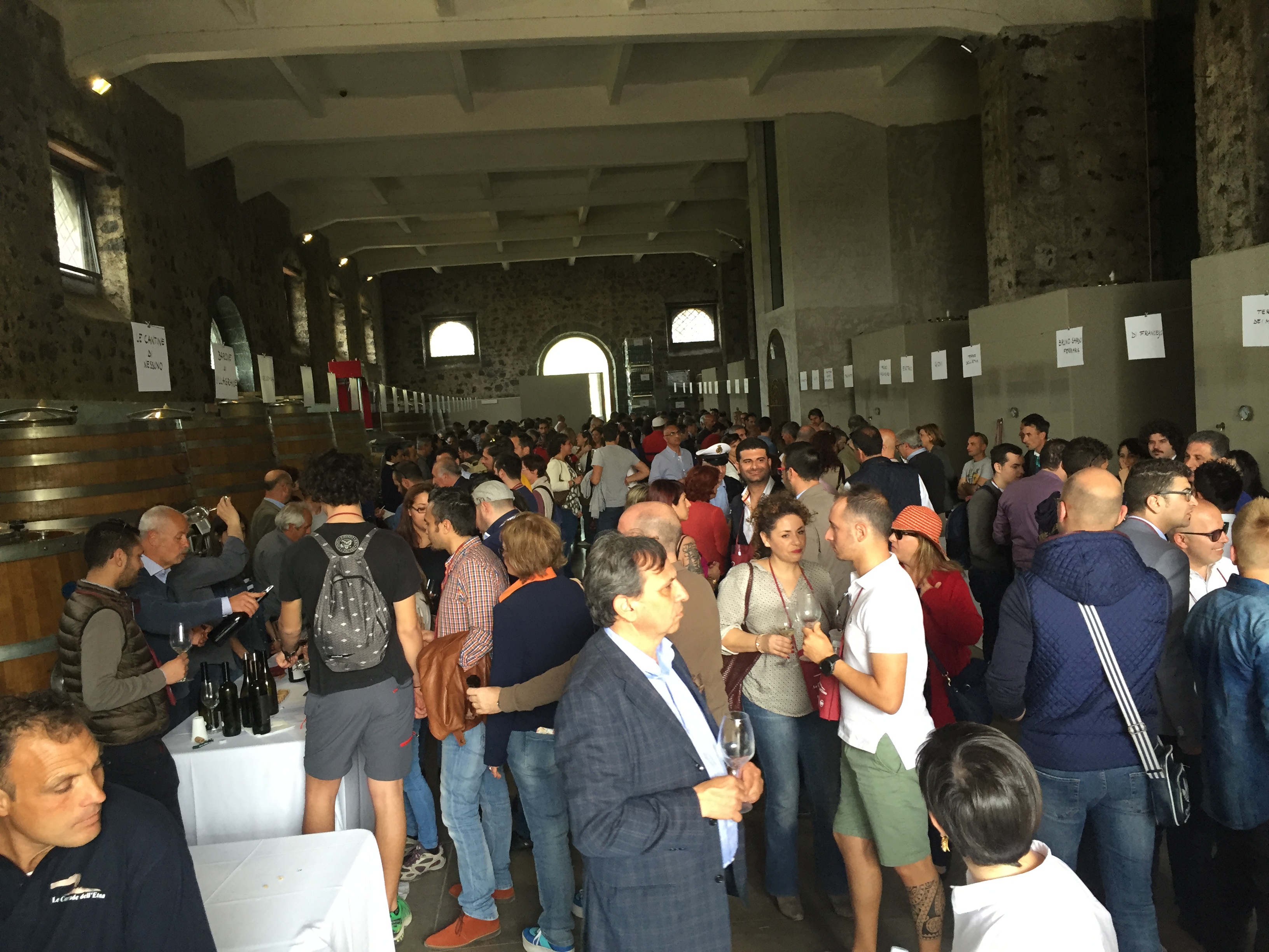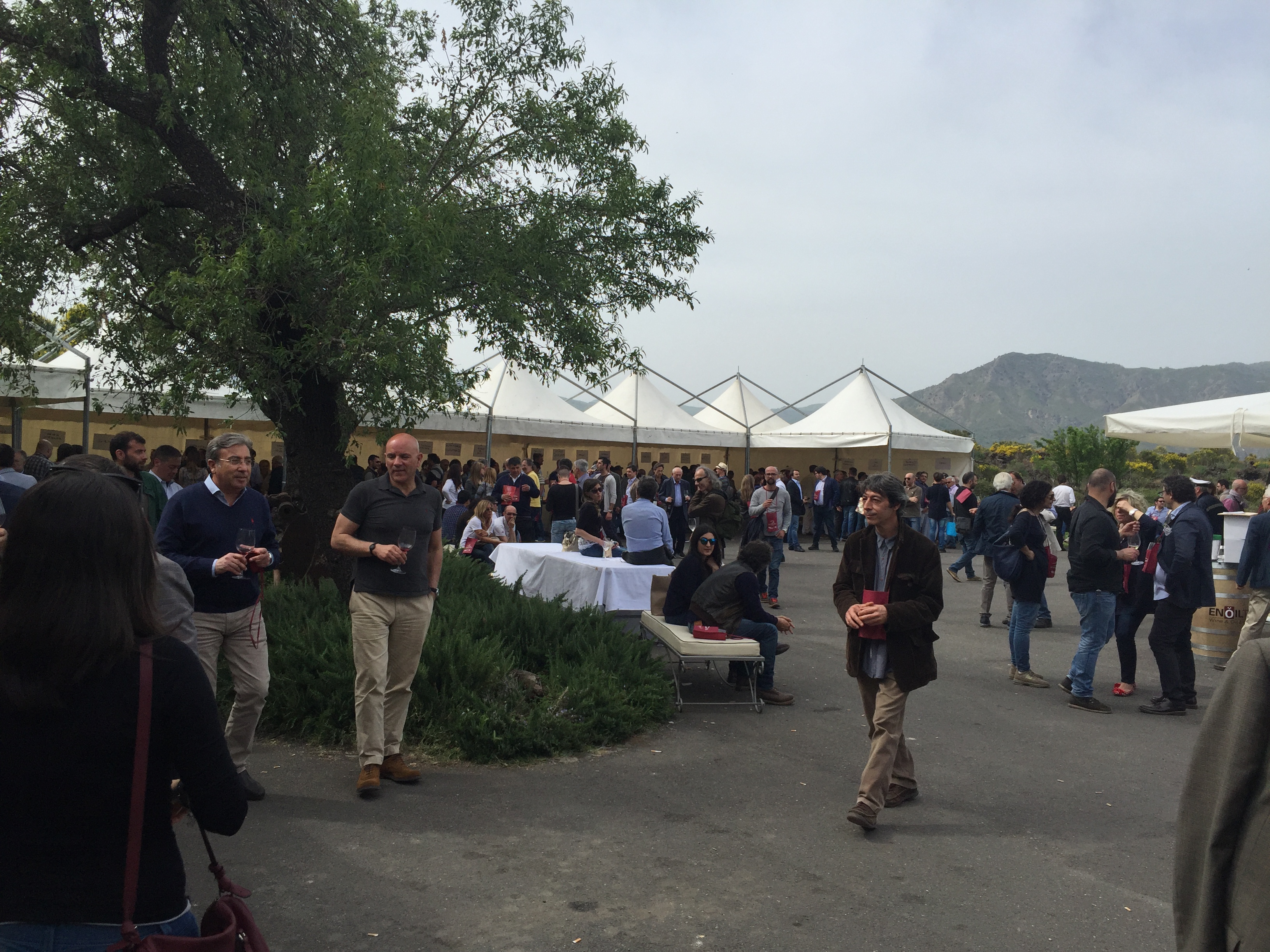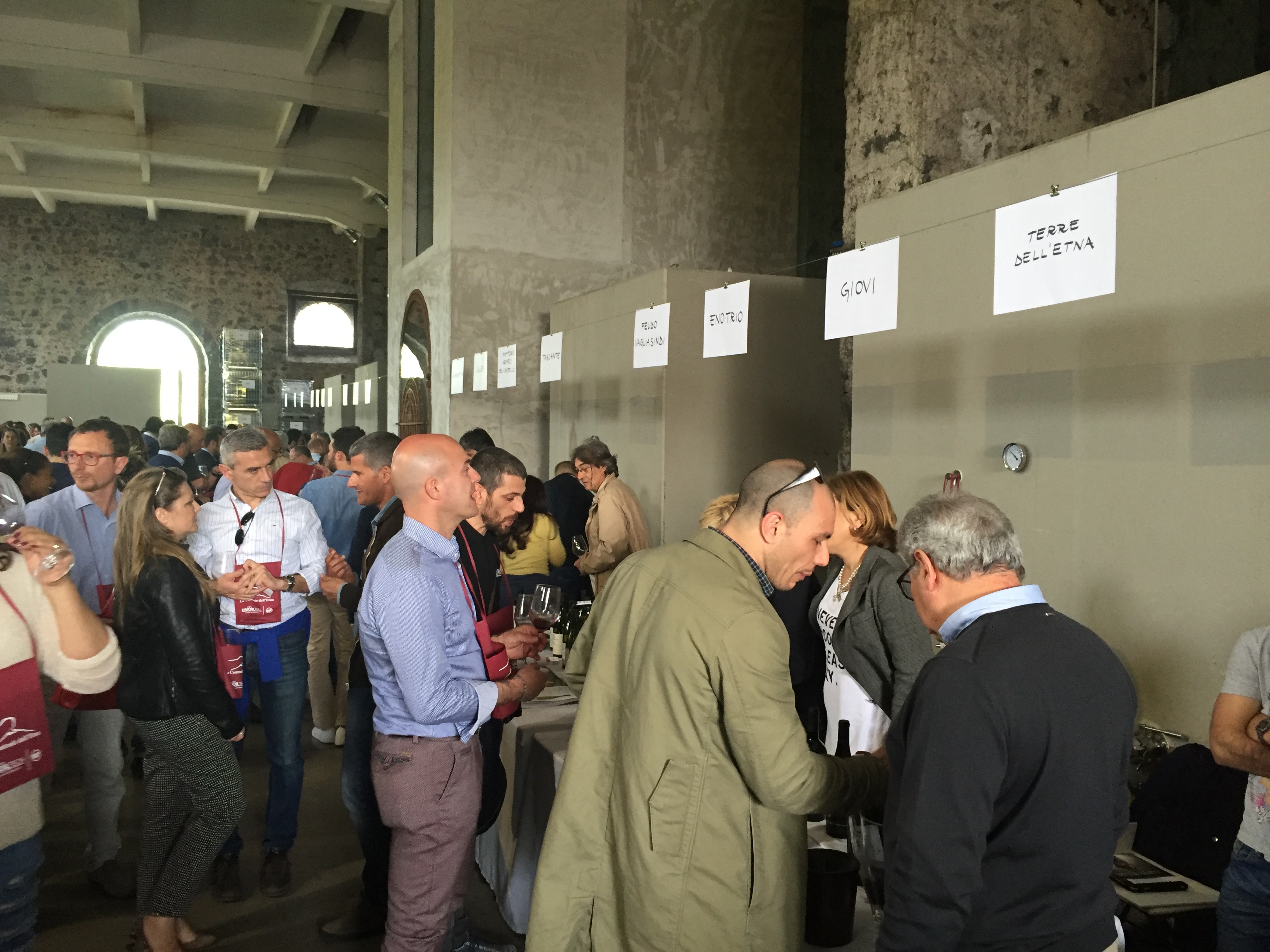 Quest’anno all’evento era presente con un proprio stand pure l’Enoteca Regionale Sicilia Orientale, che ha sede nella stessa Castiglione e raggruppa diversi comuni del catanese e messinese, due Gal, diversi operatori turistici e numerose aziende vitivinicole. L’Etna si conferma un territorio dalle grandi potenzialità, che continua ad attirare anche nuovi imprenditori del settore vitivinicolo che qui vogliono investire. L’evento creato da Andrea Franchetti , l’imprenditore toscano che ha investito sul vulcano e produce vini esportati in tutto il mondo con la sua azienda “ Passopisciaro” quest’anno è giunto alla nona edizione. Rossi, bianchi, rosati, spumanti, tutti i vini in “passerella”, sia le ultime produzioni che degli anni precedenti. Un evento atteso e condiviso da tutte le aziende del territorio, diventando di conseguenza un prezioso strumento di promozione di tutte le aziende partecipanti, dove anche le piccole aziende trovano qui l’opportunità di farsi conoscere, dove aziende che producono milioni di bottiglie ed esportano in tutto il mondo, si ritrovano accanto a piccoli produttori, con produzioni di nicchia e numeri limitati di bottiglie commercializzate. Una formula che funziona, almeno finora, ma dove secondo alcuni di fatto è diventato solo una passerella di tendenza, dove produttori, giornalisti, addetti ai lavori si ritrovano semplicemente perché non si può essere assenti, ma ben venga l’evento che invece sta innescando nuovi meccanismi, nuovi input, dove poi all’evento ufficiale fanno da corollario altre iniziative, intraprese dalle stesse aziende vitivinicole o da ristoratori della zona. Contrade dell’Etna insomma diventa una kermesse che aiuta l’enoturismo sull’Etna e sul territorio di Castiglione in particolare, dove ricordiamo solo sul territorio comunale castiglionese sono censiti oltre 50 aziende vitivinicole. Ma ecco l’elenco ufficiale delle aziende di Contrade dell’Etna 2016 (dopo l’elenco alcune foto della giornata).