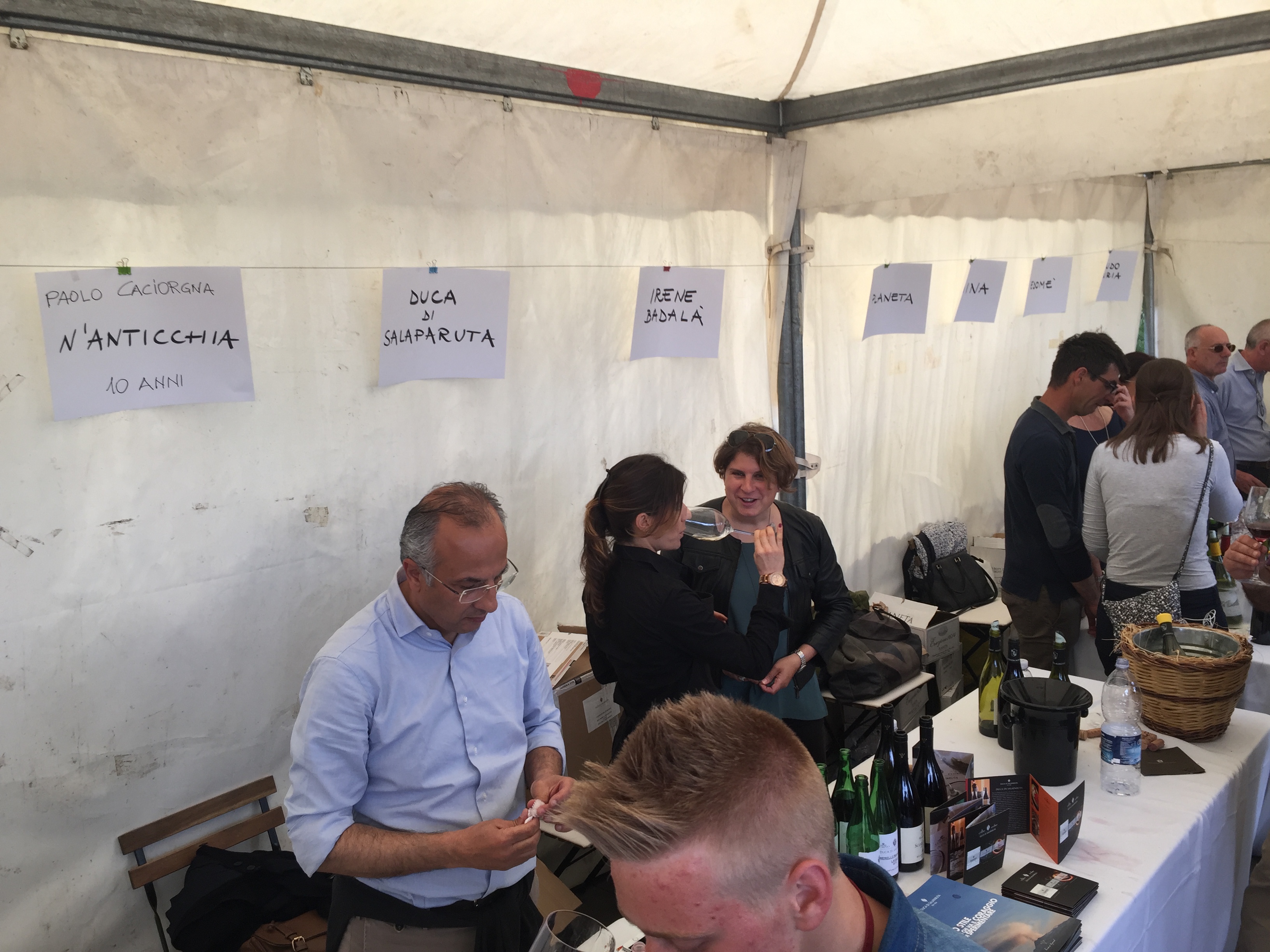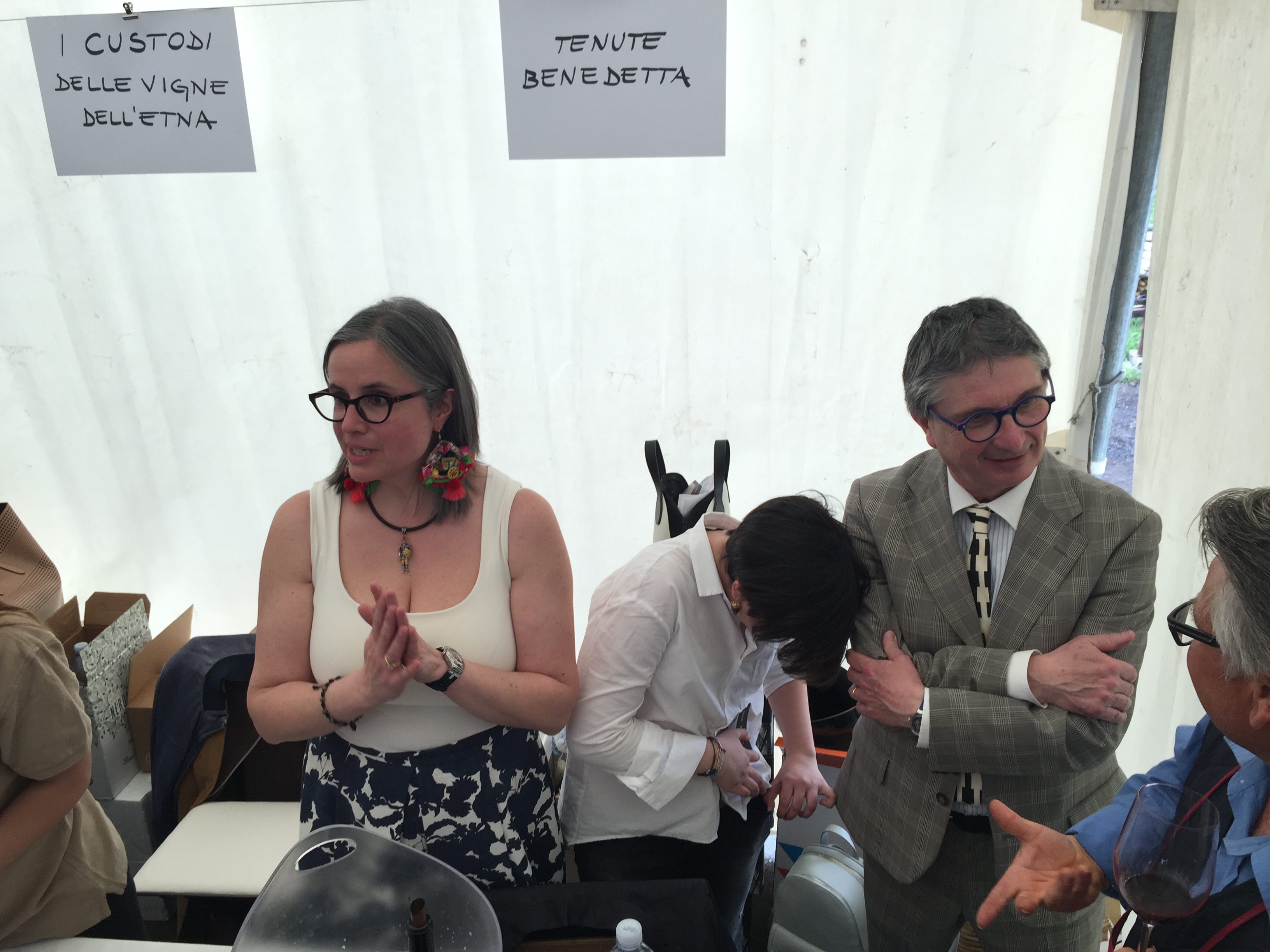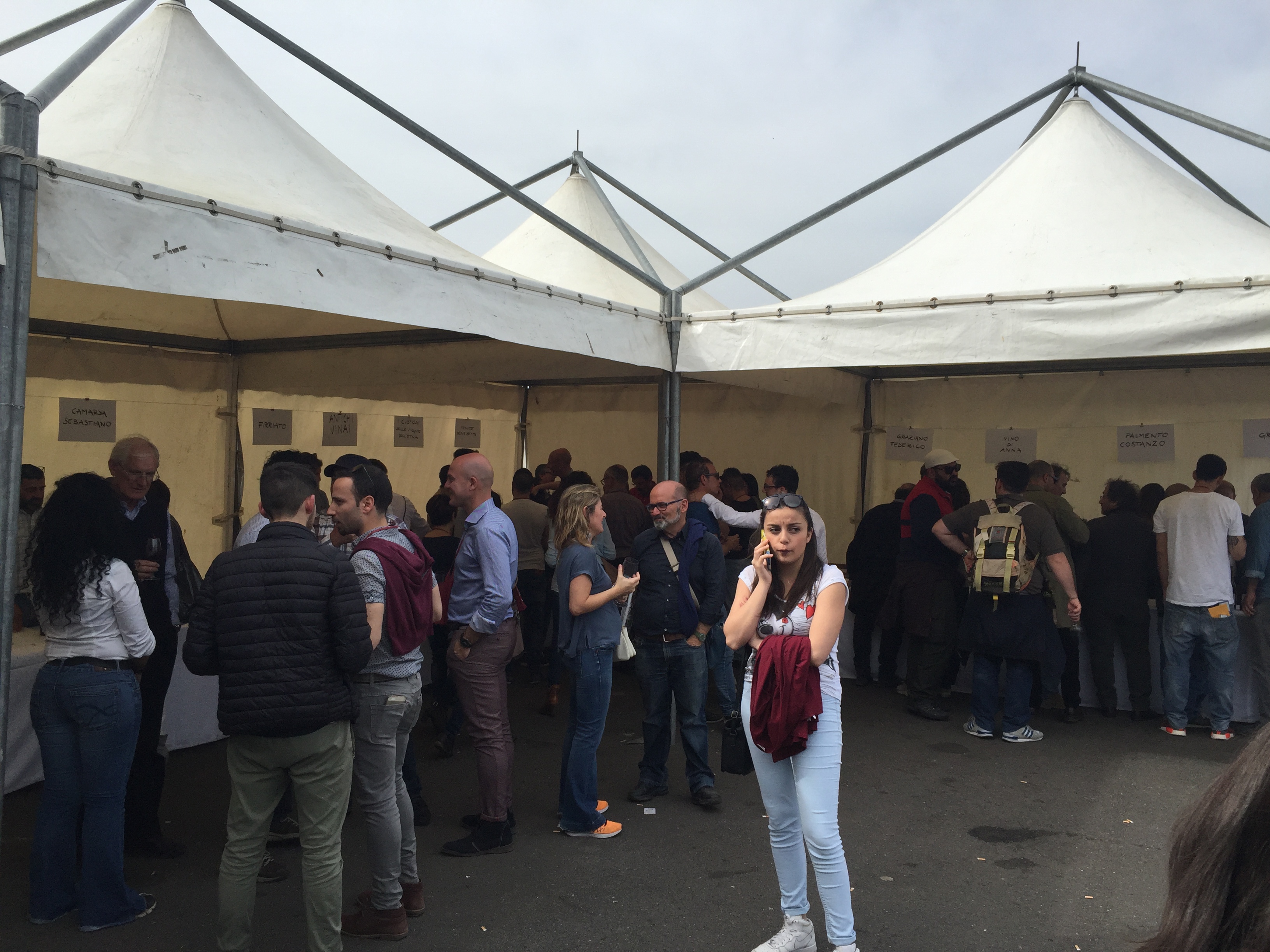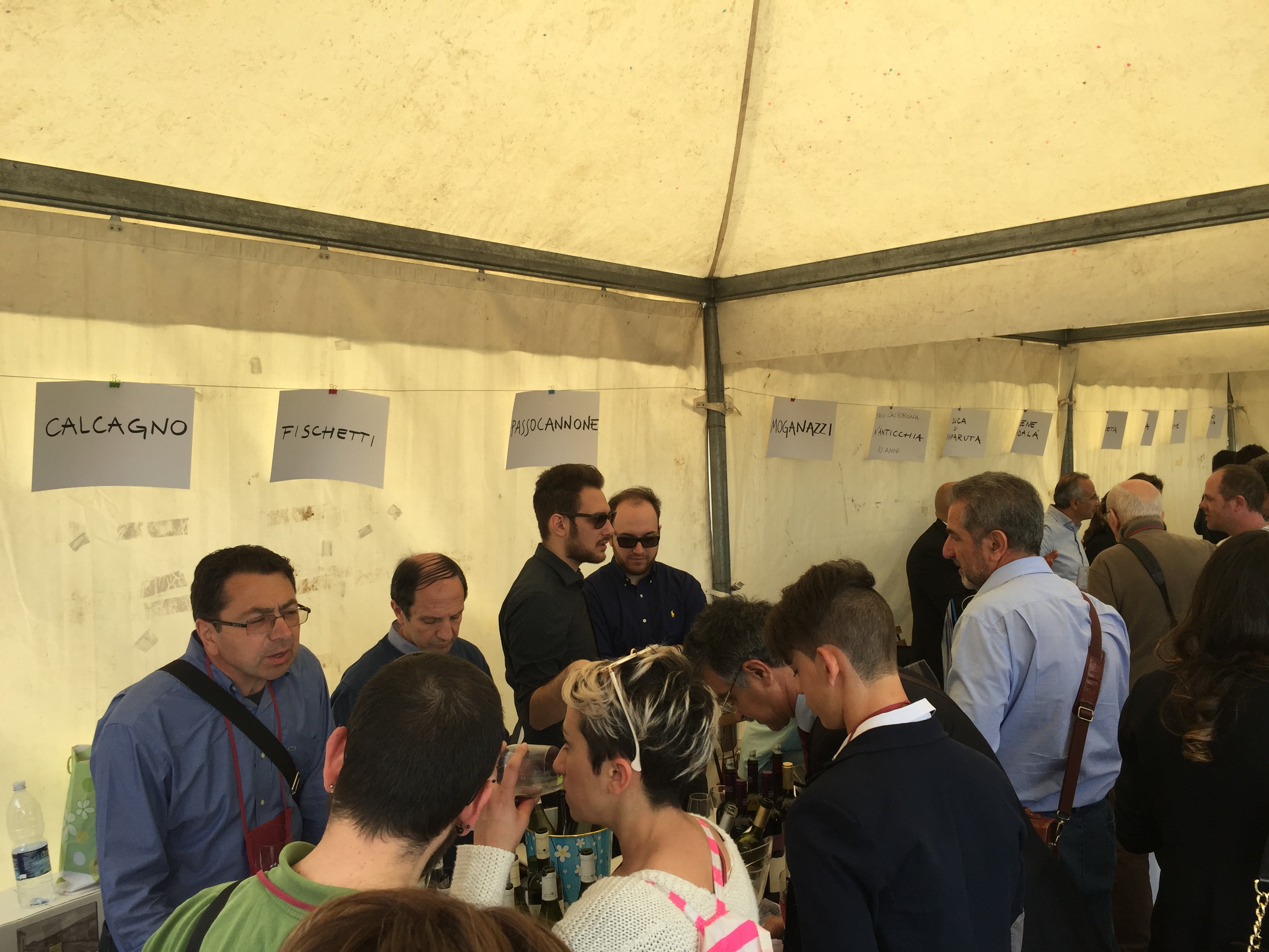 Quest’anno all’evento era presente con un proprio stand pure l’Enoteca Regionale Sicilia Orientale, che ha sede nella stessa Castiglione e raggruppa diversi comuni del catanese e messinese, due Gal, diversi operatori turistici e numerose aziende vitivinicole. L’Etna si conferma un territorio dalle grandi potenzialità, che continua ad attirare anche nuovi imprenditori del settore vitivinicolo che qui vogliono investire. L’evento creato da Andrea Franchetti , l’imprenditore toscano che ha investito sul vulcano e produce vini esportati in tutto il mondo con la sua azienda “ Passopisciaro” quest’anno è giunto alla nona edizione. Rossi, bianchi, rosati, spumanti, tutti i vini in “passerella”, sia le ultime produzioni che degli anni precedenti. Un evento atteso e condiviso da tutte le aziende del territorio, diventando di conseguenza un prezioso strumento di promozione di tutte le aziende partecipanti, dove anche le piccole aziende trovano qui l’opportunità di farsi conoscere, dove aziende che producono milioni di bottiglie ed esportano in tutto il mondo, si ritrovano accanto a piccoli produttori, con produzioni di nicchia e numeri limitati di bottiglie commercializzate. Una formula che funziona, almeno finora, ma dove secondo alcuni di fatto è diventato solo una passerella di tendenza, dove produttori, giornalisti, addetti ai lavori si ritrovano semplicemente perché non si può essere assenti, ma ben venga l’evento che invece sta innescando nuovi meccanismi, nuovi input, dove poi all’evento ufficiale fanno da corollario altre iniziative, intraprese dalle stesse aziende vitivinicole o da ristoratori della zona. Contrade dell’Etna insomma diventa una kermesse che aiuta l’enoturismo sull’Etna e sul territorio di Castiglione in particolare, dove ricordiamo solo sul territorio comunale castiglionese sono censiti oltre 50 aziende vitivinicole. Ma ecco l’elenco ufficiale delle aziende di Contrade dell’Etna 2016 (dopo l’elenco alcune foto della giornata).