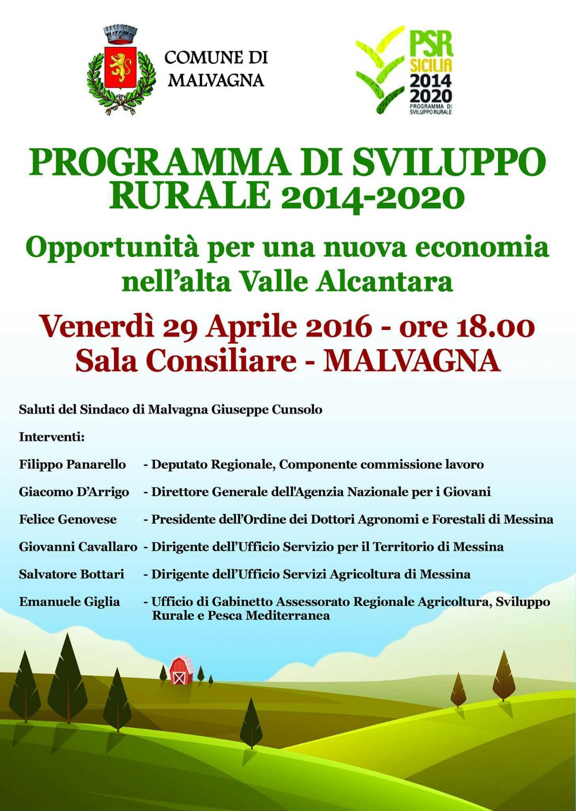 Programmare lo sviluppo dei comuni dell’Alto Alcantara attraverso il Psr 2014/2020. E’ questo l’obiettivo che si cercherà di centrare con la tavola rotonda organizzata per venerdì 29 aprile, con inizio alle ore 18 nella sala consiliare. L’incontro è stato promosso dal sindaco Giuseppe Cunsolo e vedrà intervenire :il deputato all’Ars Filippo Panarello;Giacomo d’Arrigo, Direttore Generale Agenzia Nazionale per i Giovani; Emanuela Giglia, Ufficio di Gabinetto, Assessorato Regionale Agricoltura; Salvatore Bottari, dirigente Ufficio Servizi Agricoltura di Messina; Giovanni Cavallaro, dirigente Ufficio Servizio per il Territorio di Messina; Felice Genovese, presidente dell’Ordine Provinciale Dottori Agronomi e Forestali. Il Programma di Sviluppo Rurale per i prossimi 6 anni rappresenta in tal senso una grande opportunità di sviluppo, qualora si riesca ad accedere alle misure e ai fondi previsti in tale direzione. Per un territorio a forte vocazione agricola, dove è possibile immaginare anche un certo turismo rurale in grado di recuperare e valorizzare tradizioni e patrimonio di queste aree rurali, il Psr rappresenta una grande occasione di rilancio dell’economia locale che va ad interessare diversi comuni di questa zona dell’Alto Alcantara, come Malvagna, Mojo Alcantara, Roccella Valdemone, Santa Domenica Vittoria, ecc. Importante sarà anche la progettualità e programmazione degli enti locali con le municipalità in testa, ma anche dei privati ed in particolar modo degli imprenditori agricoli potenzialmente interessati.