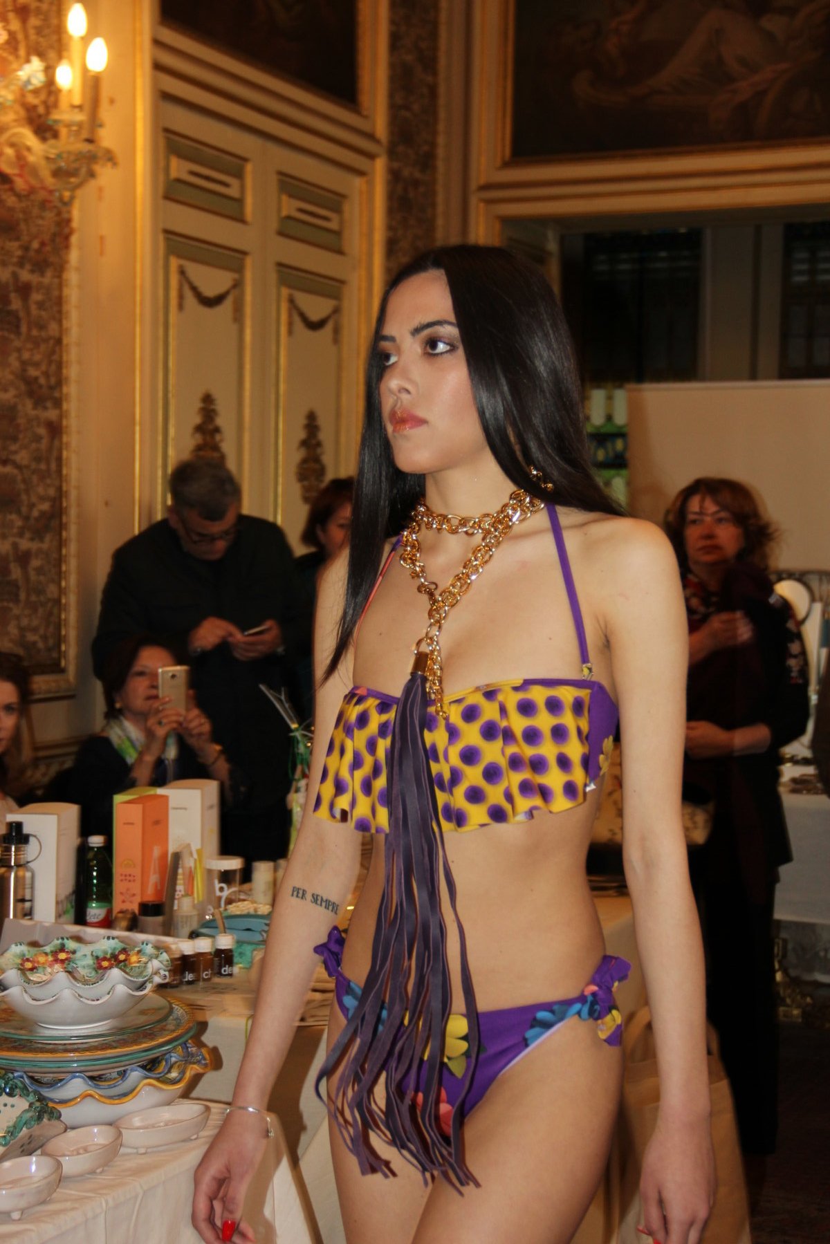 Veri gioielli di creatività in una ricerca di dettagli e novità ma non tralasciando colori e forme della tradizione stilistica mediterranea. Dagli accessori alla moda mare proposta da Angela e Margherita Falco per Mamì con la collezione Moda Mare Beachwear 2017, per la donna più esigente o la ragazza più sbarazzina, per un costume classico o più piccante. Una esaltazione di tonalità e fantasie geometriche, per la donna di fascino anche a mare. Le modelle sono state le vere interpreti dei vari momenti moda, immedesimate nel ruolo di ambasciatrici di bellezza ma sopratutto promotrici di stili e creatività, grazie anche alle acconciature e al make up a cura dello staff dell’Accademia Nicotra, scuola per acconciatori, truccatori ed estetisti di Catania.