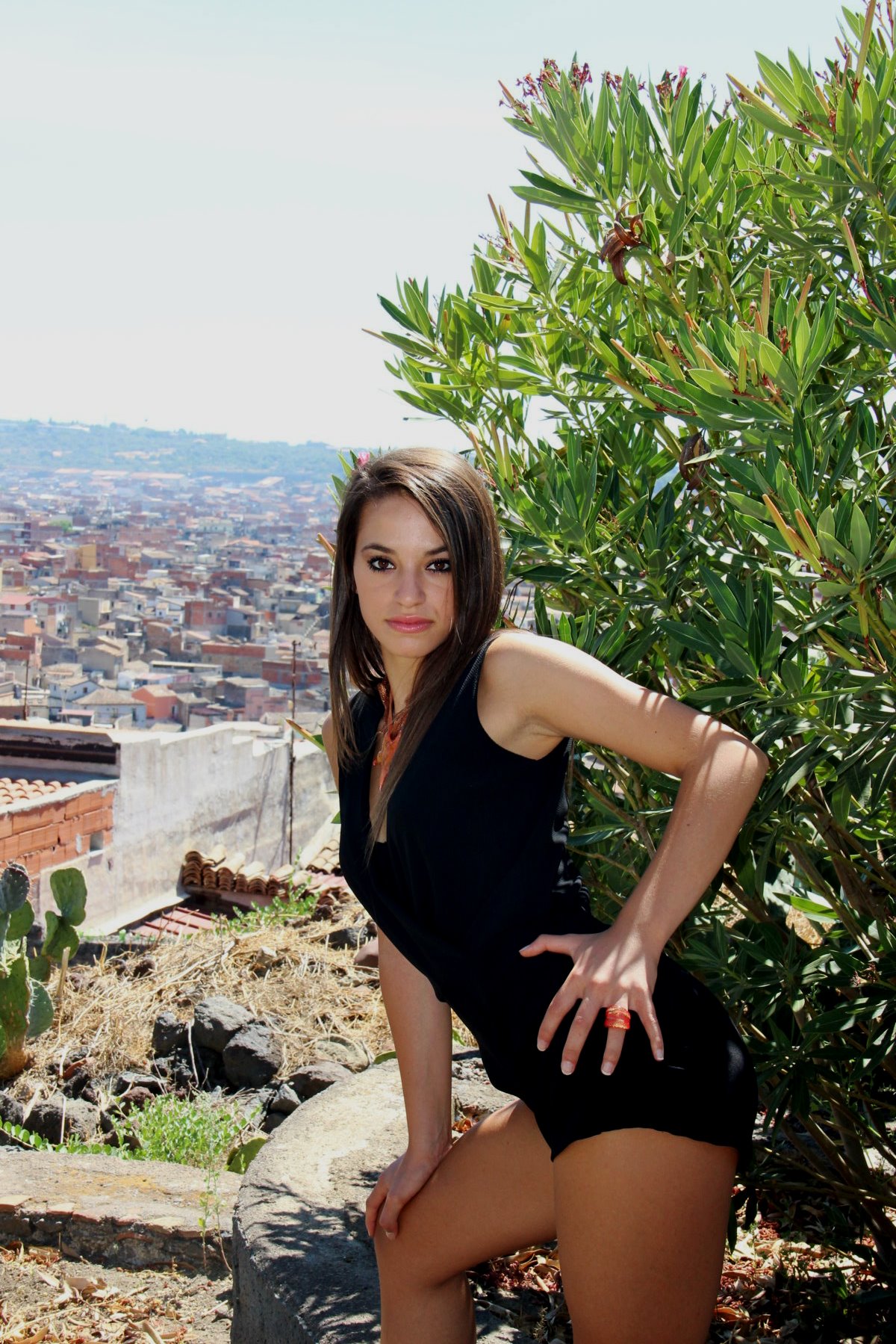 arcate cieche, un tempo affiancate ad alcune abitazioni contadine abbattute negli anni ’60. Il Castello negli anni seguenti ospitò re e regine, tra i quali Federico II di Svevia, la regina Eleonora d’Angiò e la regina Bianca di Navarra. Per concessione di Federico II passò a Galvano Lancia. Il Castello Normanno, fatto costruire nel 1072 d.C., dal Gran Conte Ruggero aveva lo scopo di garantire la protezione della Valle del Simeto dalle incursioni islamiche.Il castello fu assegnato alla figlia di Ruggero, Flandrina, sposa dell’aleramico Enrico di Lombardia e negli anni ospitò re e regine, tra i quali Federico II di Svevia, la regina Eleonora d’Angiò e la regina Bianca di Navarra. Luogo importante che seppur domina la valle del Simeto resta un po nell’ombra, nell’indifferenza. La mattina che arriviamo sui luoghi troviamo pure una troupe della Rai intenta a fare riprese. Ma adesso conosciamo più da vicino la nostra protagonista, pronta a farsi fotografare per il nostro magazine on line. Decisamente affascinante e spontanea nei suoi movimenti, nelle sue pose con naturalezza. Movimenti morbidi ma decisi che evidenziano anche una sua grande passione:la danza. La nostra fotomodella seppur agli esordi in campo fotografico denota già professionalità e sopratutto spontaneità, in un alternarsi di cambi tra casual ed elegante. I luoghi risultano una location ideale per servizi fotografici di moda, seppur si notano evidenti atti di vandalismo dappertutto. Roberta continua ad immergersi in questo ruolo di testimonial, tra sguardi e pose che la rendono seducente ma sopratutto abile interprete del ruolo che ha in questo contesto.