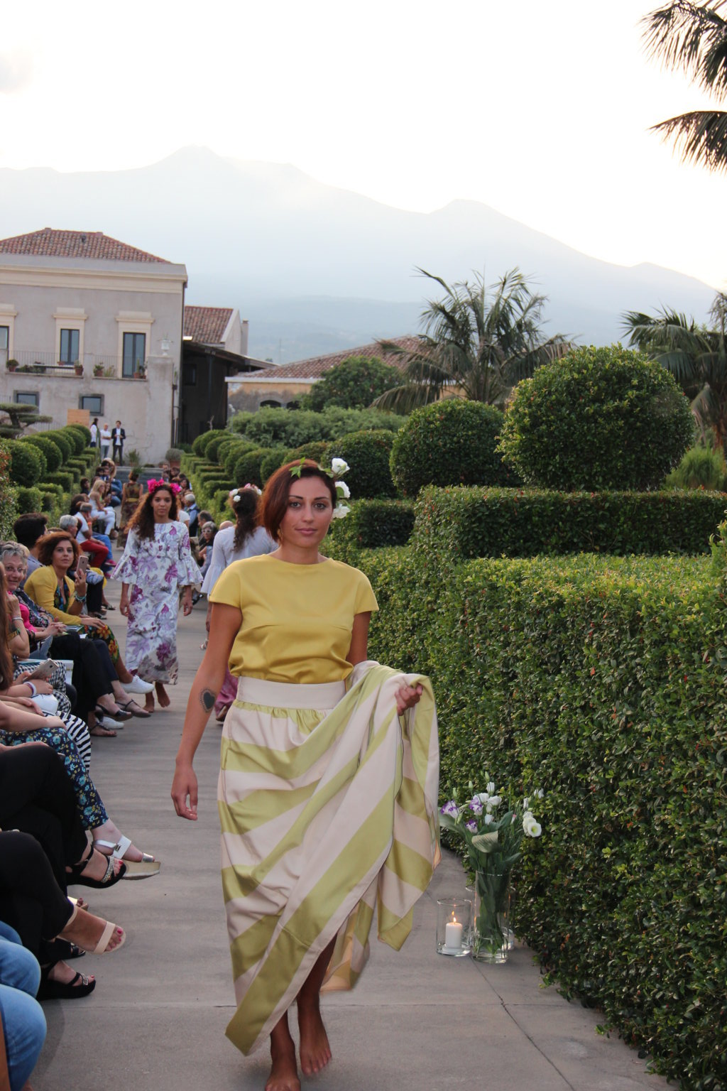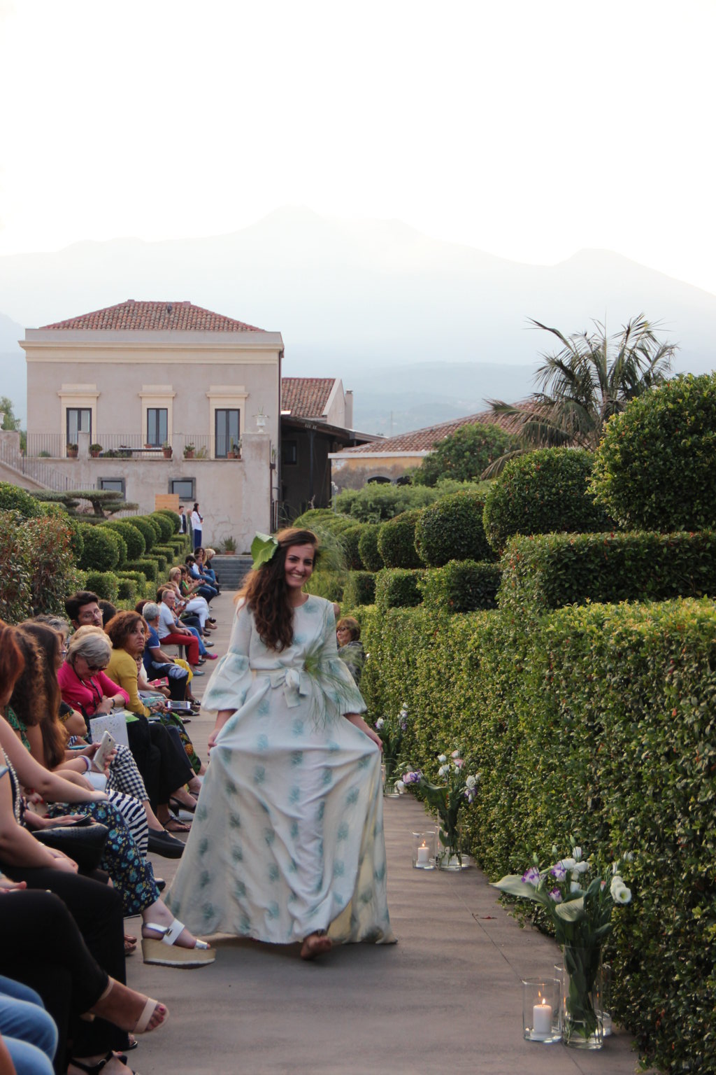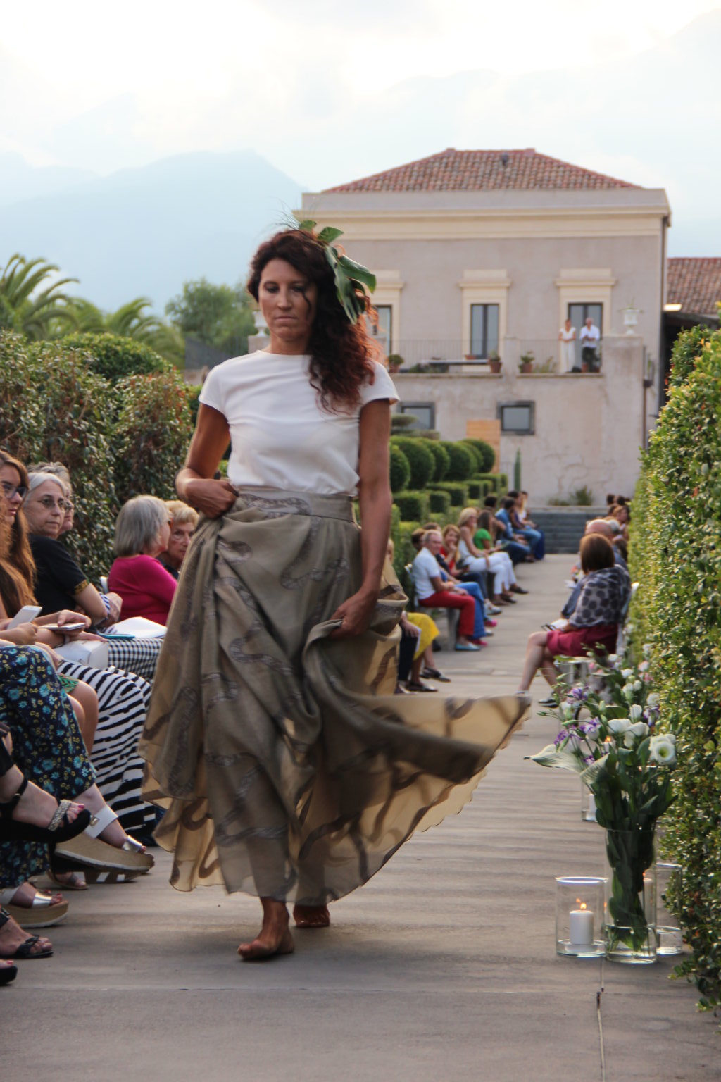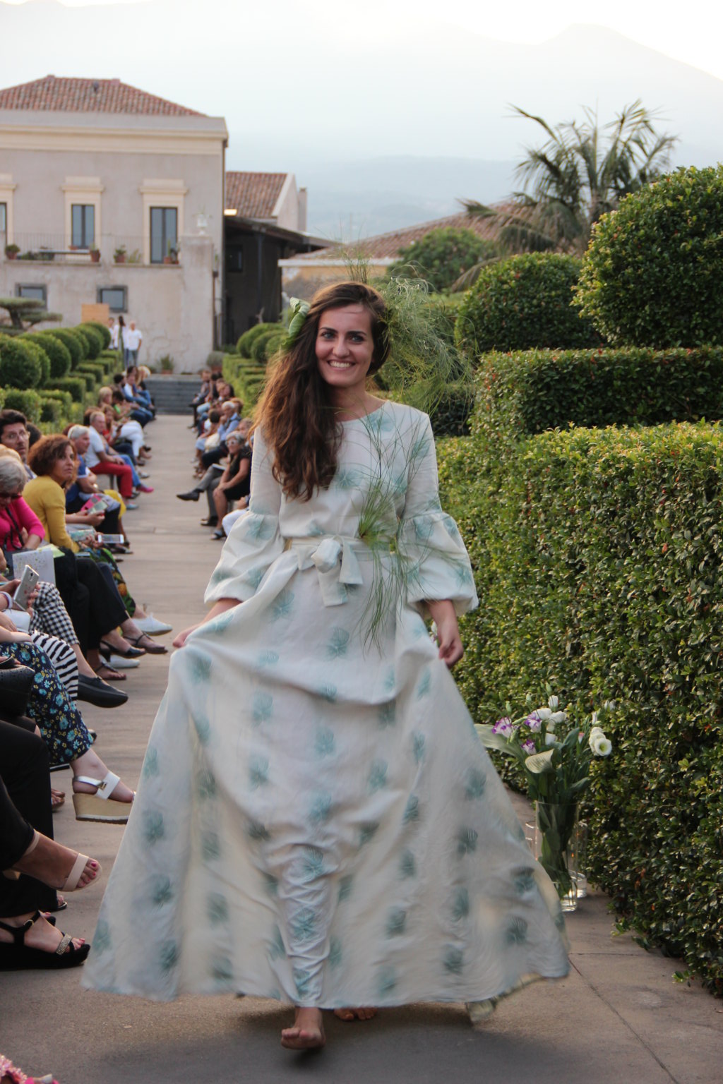 Michele La Rosa – In passerella dieci creazioni di haute couture ispirate alla natura della Sicilia e ai giardini realizzati in occasione della biennale internazionale ideata da Mario Faro e organizzata dalla Fondazione Radicepura. Una location suggestiva per un binomio moda-natura di grande impatto. A sfilare, sabato pomeriggio, sono state state le creazioni firmate Alberta Florence, l’atelier fondato dalla designer toscana Giulia Mondolfi. Il paesaggio mediterraneo diventa così un elegante abito da indossare: il Radicepura Garden Festival, dopo l’arte figurativa, culinaria e cinematografica, attinge a quella sartoriale, nell’affascinante universo della moda, per dare e dimostrare il valore culturale del giardino e del patrimonio botanico della nostra terra. Per realizzarli la giovane stilista ha scelto «una tavolozza finita di colori e forme – ha affermato – esattamente come fanno i progettisti, che per un giardino scelgono fra le piante di un territorio per creare continuità con il paesaggio circostante. Ho voluto che i miei dieci abiti dialogassero fra loro e attingessero dallo stesso mondo di suggestioni del paesaggio mediterraneo per poi declinare sul progetto di ogni singolo giardino». Abbandonati i tipici tagli geometrici dell’atelier, negli abiti del défilé predominano le forme organiche, morbide e le linee sinuose tipiche del mondo naturale. Tra i colori prevalgono il verde acqua, il rosa e l’ocra, per richiamare le tonalità dei giardini mediterranei. Nella scelta dei tessuti, per la prima volta, la stilista fiorentina predilige stoffe ricamate e intarsiate, oltre alle immancabili stampe floreali, con prevalenza di seta e lino. Una cornice diversa quindi dalle solite sfilate di moda, tra il verde e le piante di Radicepura e sullo sfondo l’Etna. La moda per introdurre ai temi e ai giardini dell’imponente oasi verde, divenuta ormai sede di eventi vari e visitata da molti turisti.