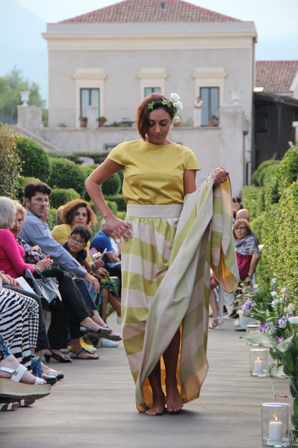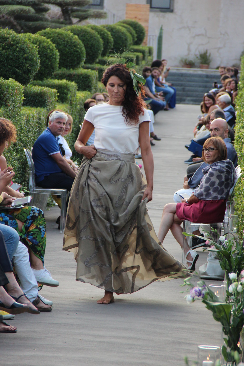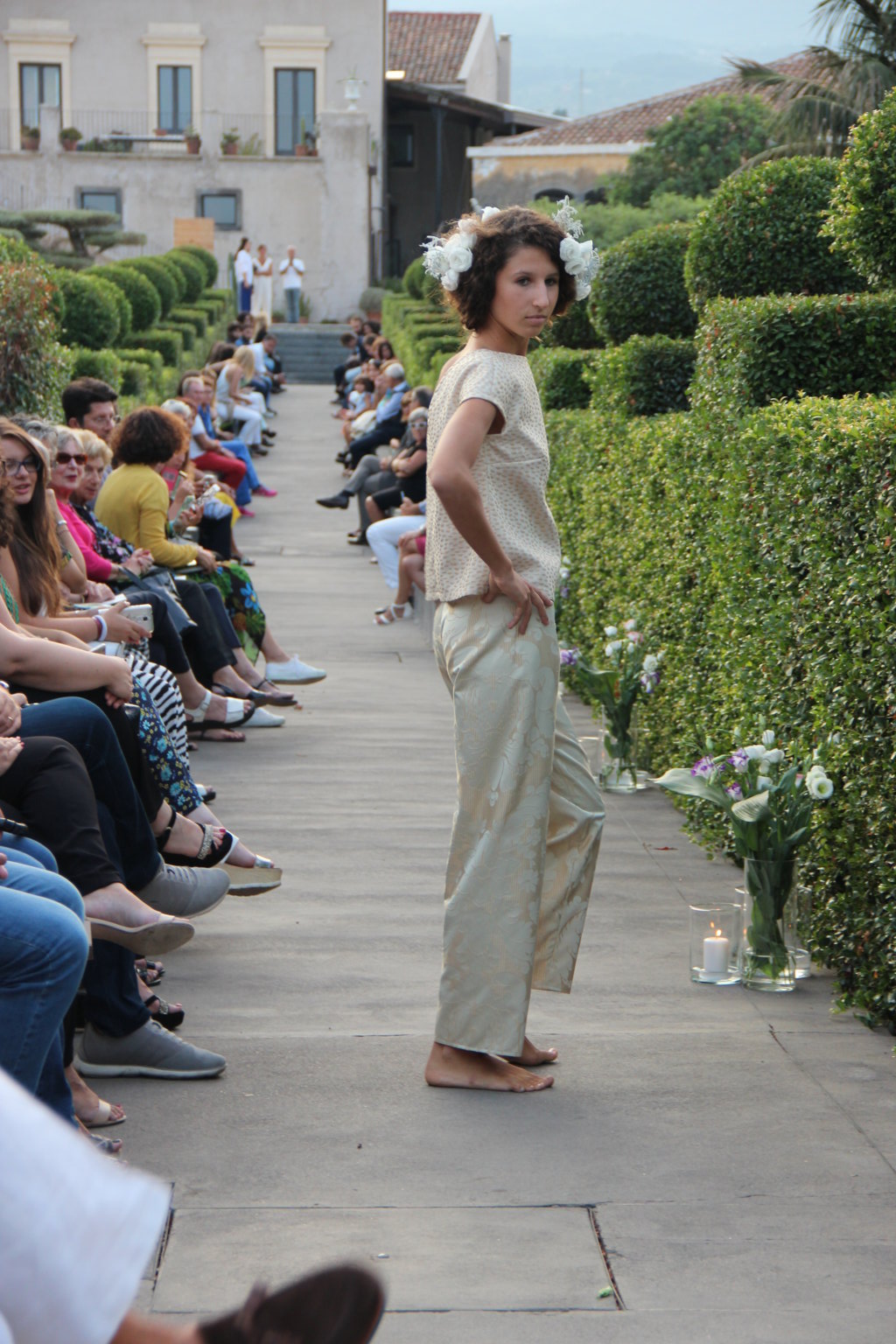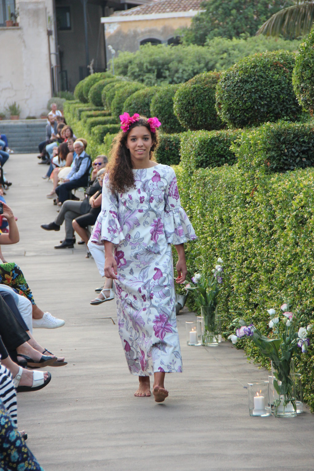Michele La Rosa – In passerella dieci creazioni di haute couture ispirate alla natura della Sicilia e ai giardini realizzati in occasione della biennale internazionale ideata da Mario Faro e organizzata dalla Fondazione Radicepura. Una location suggestiva per un binomio moda-natura di grande impatto. A sfilare, sabato pomeriggio, sono state state le creazioni firmate Alberta Florence, l’atelier fondato dalla designer toscana Giulia Mondolfi. Il paesaggio mediterraneo diventa così un elegante abito da indossare: il Radicepura Garden Festival, dopo l’arte figurativa, culinaria e cinematografica, attinge a quella sartoriale, nell’affascinante universo della moda, per dare e dimostrare il valore culturale del giardino e del patrimonio botanico della nostra terra. Per realizzarli la giovane stilista ha scelto «una tavolozza finita di colori e forme – ha affermato – esattamente come fanno i progettisti, che per un giardino scelgono fra le piante di un territorio per creare continuità con il paesaggio circostante. Ho voluto che i miei dieci abiti dialogassero fra loro e attingessero dallo stesso mondo di suggestioni del paesaggio mediterraneo per poi declinare sul progetto di ogni singolo giardino». Abbandonati i tipici tagli geometrici dell’atelier, negli abiti del défilé predominano le forme organiche, morbide e le linee sinuose tipiche del mondo naturale. Tra i colori prevalgono il verde acqua, il rosa e l’ocra, per richiamare le tonalità dei giardini mediterranei. Nella scelta dei tessuti, per la prima volta, la stilista fiorentina predilige stoffe ricamate e intarsiate, oltre alle immancabili stampe floreali, con prevalenza di seta e lino. Una cornice diversa quindi dalle solite sfilate di moda, tra il verde e le piante di Radicepura e sullo sfondo l’Etna. La moda per introdurre ai temi e ai giardini dell’imponente oasi verde, divenuta ormai sede di eventi vari e visitata da molti turisti.