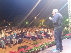 Michele La Rosa – L’incontro – evento con Mogol, il celebre autore delle canzoni di Lucio Battisti, e vari altri interpreti, tenutosi giorni addietro, ha dato già i suoi risvolti. Una grande festa in occasione anche dei suoi oltre 50 anni di carriera. Ancora una volta gli organizzatori della Mad, ovvero Egidio e Karym Daidone hanno stupito il pubblico, hanno creato un evento che ha entusiasmo il numeroso pubblico presente in Piazza dei Vespri Siciliani. Non solo musica, ma è stata l’occasione per raccontare e descrivere l’Italia degli anni passati attraverso le canzoni simbolo di quei periodi , canzoni che hanno visto proprio Mogol come autore e che ancora oggi vengono riproposte in numerosi spettacoli musicali. E così Egidio e