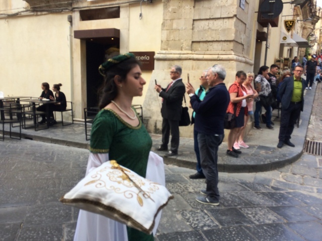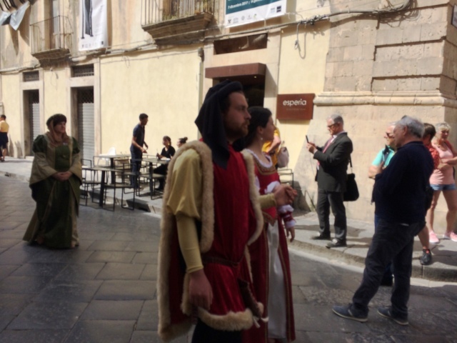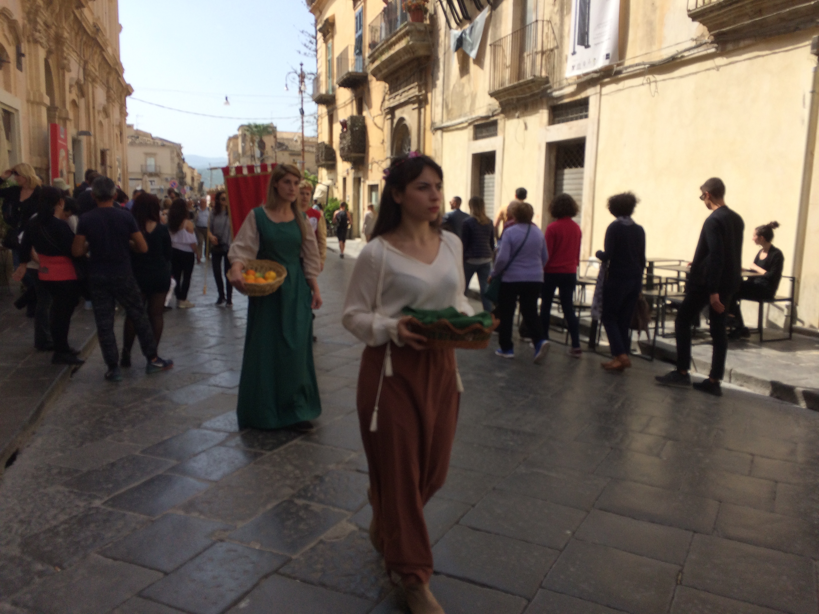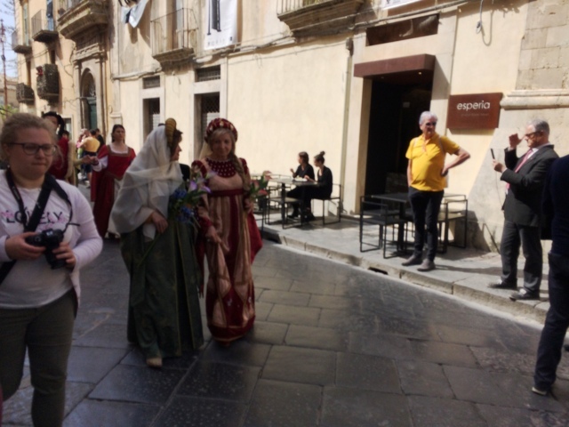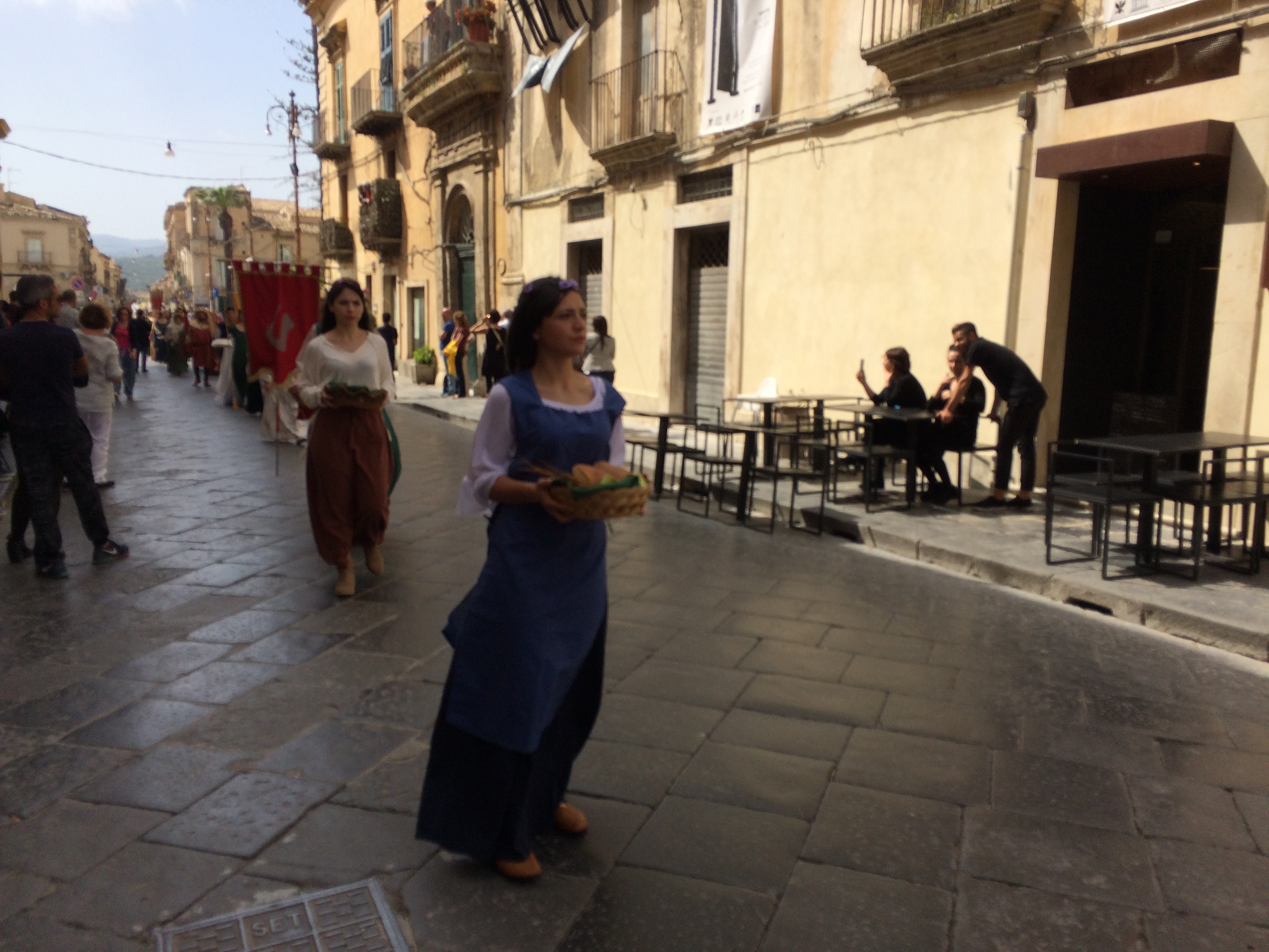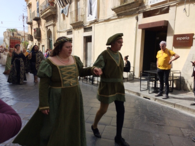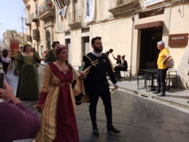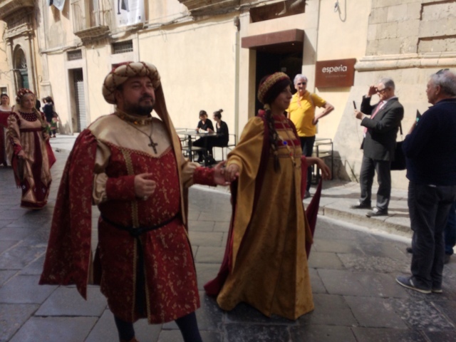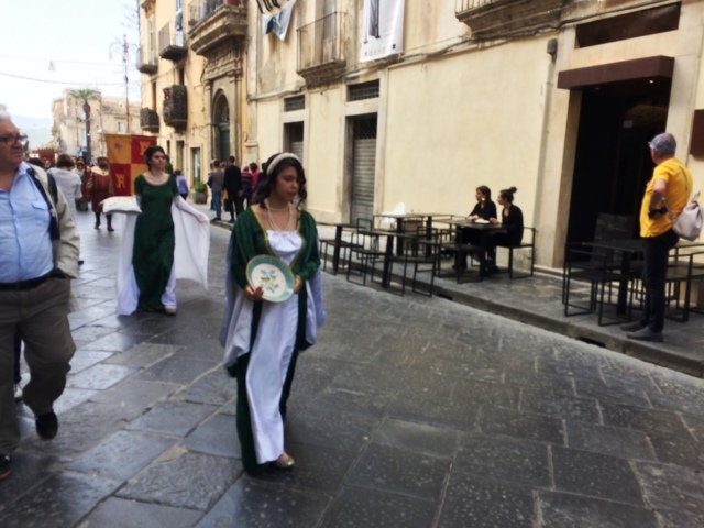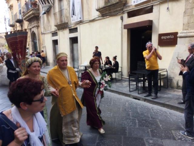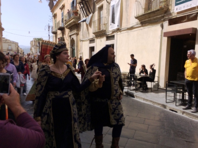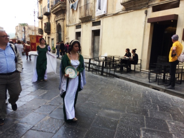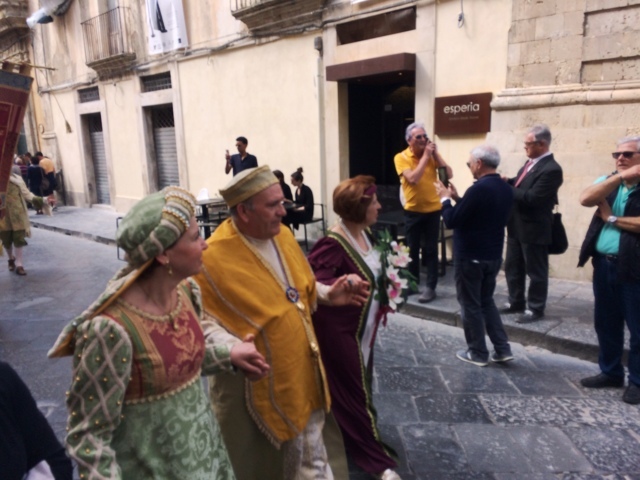 Michele La Rosa – C’era anche il gruppo Fiera Franca di Roccella 1463, sul palco di Noto per il Gran Palio dei tre Valli di Sicilia. Il gruppo storico che fa capo all’Associazione Auricella ha sfilato insieme a numerosi gruppi provenienti da tutta l’isola, alla presenza di numerosi turisti e di un pubblico numeroso, tra questi pure numerosi amministratori comunali di varie località italiane in quanto in quelle stesse ore a Noto si svolgeva la Convention Nazionale delle Città del Vino. Si trattava della quinta edizione del Gran Palio dei Tre Valli di Sicilia . Come ogni anno, diversi i cortei storici siciliani in rappresentanza della propria storia e di una precisa identità. Come quella del Corteo Barocco di Noto che organizza l’evento e che attraverso il suo direttivo e i propri figuranti era presente ma fuori concorso. Una giuria qualificata, infatti, chiamata a decretare il vincitore del Palio che succederà al Corteo Storico Principato di Castelbuono, presente anche quest’anno insieme con il Gruppo Marchesato della Cerda, I Giovani del Castello di Vicari (che si aggiudicarono il Palio nel 2015), la Bella Epoque di Palermo, l’Associazione Penelope di Ventimiglia di Sicilia, l’Harmonia Suave che fa capo a Mazara del Vallo ma ha gruppi in altre sedi isolane, il Corteo Santa Rita di Castelvetrano, l’Antica Sartoria di San Gregorio, il Katabba di Monforte San Giorgio (vincitori dell’edizione 2016), il Carlo V di Nicosia, il Corteo storico arabo-normanno di Aidone, il Gruppo Princìpi Termini e Ferreri di Casteltermini e le associazioni di Musici e Sbandieratori di Belpasso, Castelvetrano, Motta Santa Anastasia, Comiso (presente con I Tamburi Imperiali) e Noto. Ad aprire il lungo serpentone è stata una società di danza di Catania che rappresenta costumi dell’800. Il via è stato dato domenica mattina con le sfilate dei Musici e Sbandieratori che poi hanno accompagnato il lungo corteo nel pomeriggio, a partire dalle 15, da piazza Nino Bixio per poi proseguire su corso Vittorio Emanuele, via Pirri, via Cavour, via Cavarra, piazzale Marconi e l’arrivo in piazza Municipio.